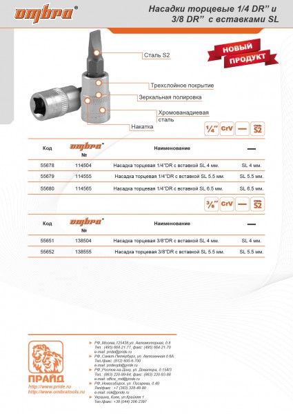 114565 Насадка торцевая 1/4"DR с вставкой-битой шлицевой, SL6.5 Ombra